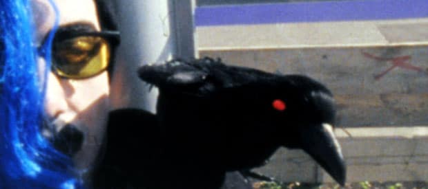 We found a toy crow with light up red eyes at Shoppers when we went to buy bus tickets on the way to Polo Park [mall]. Someone threw a water bottle at us; two guys threatened to stab us in the mall; and then mall security tossed us out.